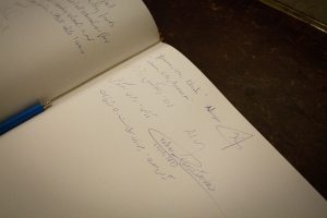 Signatures from the Nobel Peace Laureates family at Uppsala University library archives.