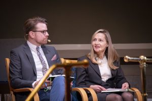 Sigrid Gruener, Programme Director at the Foundation, speaking at the Uppsala University Aula.