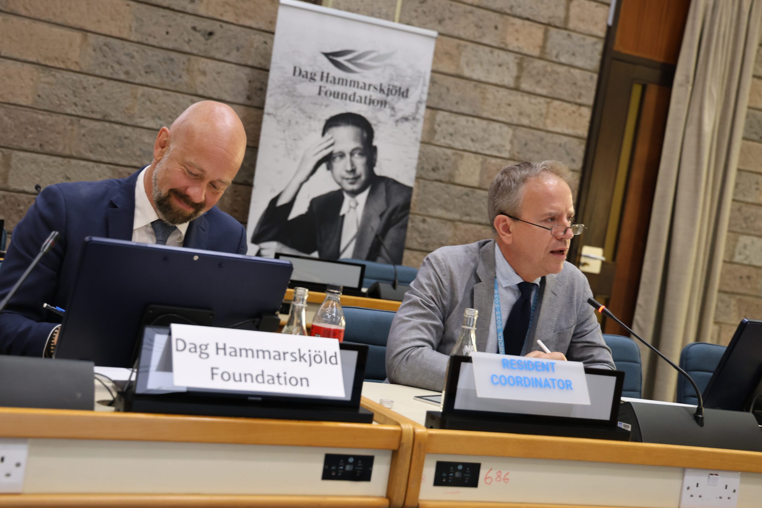 25 September, Nairobi, Kenya. Stephen Jackson, UN Resident Coordinator in Kenya and Piter Linner, Programme Director of Dag Hammarskjold Foundation welcomed representatives from 20 Member States and 8 UN entities to the third national dialogue on the UN Funding Compact. The conversation explored how the UN and its partners can secure higher-quality, less fragmented funding to address today’s development and humanitarian challenges.